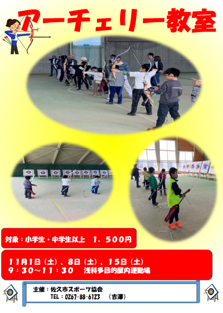 佐久市スポーツ協会自主事業の「アーチェリー教室」を開催します。