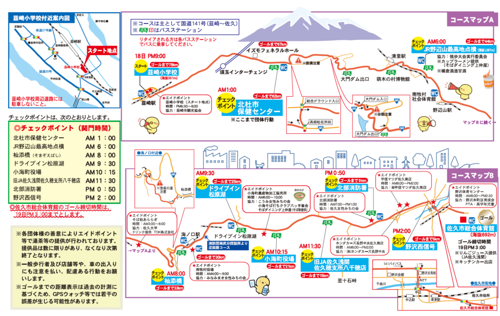 ・集合場所: 佐久市総合体育館前駐車場