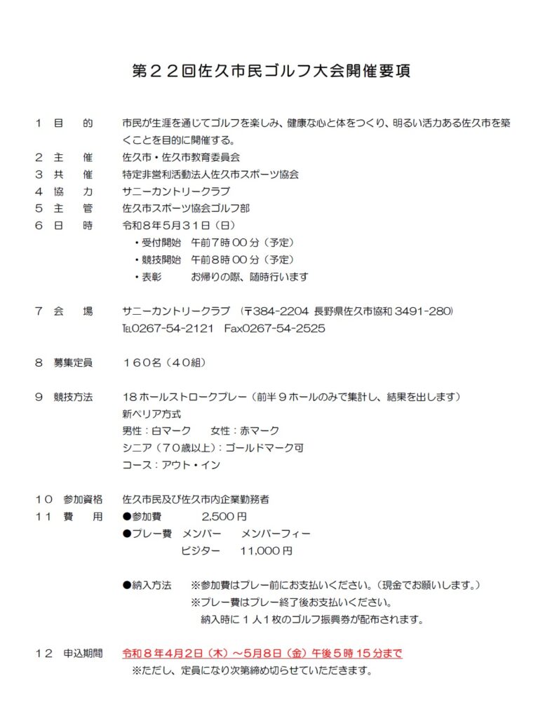 「第22回佐久市民ゴルフ大会」を開催します!